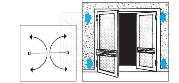 – Coppia di cerniere Bommer per apertura di porte in entrambi i versi e con chiusura automatica delle ante per mezzo di molla.