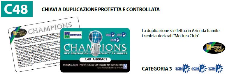 Prendiamo ora in esame il cilindro Champions C55 Platinum Mottura per chiarire cosa si intende per duplicazione controllata: lo sbozzo della chiave di questo cilindro non è infatti commercializzato, pertanto solo la Mottura può duplicare la chiave del C55 Platinum. L’utente potrà interfacciarsi col Mottura Club di zona che provvederà a disporre la richiesta di duplica all’azienda. La Mottura registrerà la richiesta, notificherà quindi l’utente dell’avvenuta duplica (o dupliche) e la spedirà al Mottura Club.