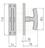 – Dimensione placca maniglia cremonese: 150 x 34 mm.