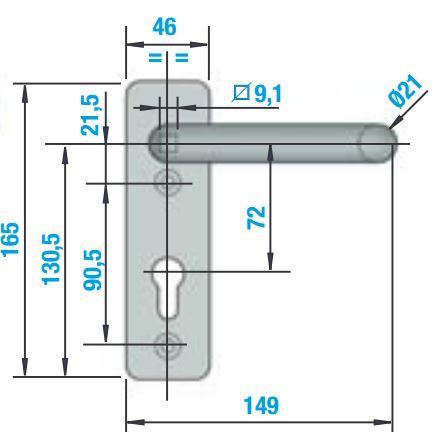 Maniglia con placca e foro cilindro per sistemi antipanico – ASSA ABLOY